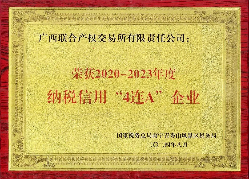 廣西聯(lián)交所榮獲2020-2023年度納稅信用“4連A”榮譽(yù)稱號(hào)